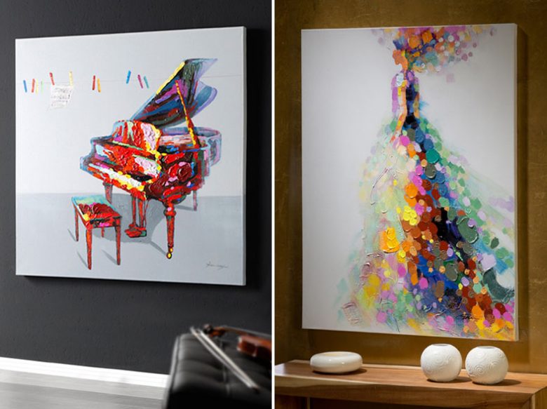 Si optas por las pinturas, en Schuller damos un giro a las clásicas conocidas con formatos como paneles pintados de madera o pinturas coloristas sobre bastidor. Si las paredes son blancas le aportará mayor luminosidad.